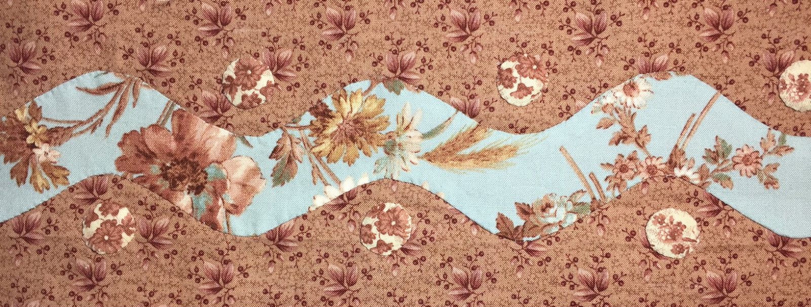 This morning I completed adding the wavy borders to my Pemberley quilt. This is taking awhile to do, but then I only work on it a little each month in between many other projects. The little star corner blocks measure 4" finished, with 3" stars...tiny English Paper Piecing. I tried fussy cutting on these and that was quite a task as the pieces were little. Happy with how it turned out. The wavy border was not difficult to make, but I measured wrong and after I had all those little dots sewn on, I had to take them all off and re-applique. I am definitely learning to read all the instructions before beginning each step.